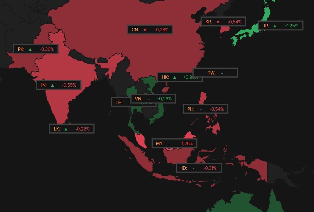 In Azië bleef Japan onverminderd opstomen, al noteerde de index doorheen de dag lange tijd onder nul. Kort voor het slot noteerde de Nikkei 1,25% hoger, terwijl ook Hongkong (+0,90%) en India ( +0,55%) in de plus afklokten. Zuid-Korea (-0,54%) en China (-0,28%) namen een snipperdag, waarbij vooral de technologiesector wat respijt kreeg naar aanleiding van de bedrukte beleggersreactie op de kwartaalcijfers en de vooruitzichten van chipgigant Nvidia (-5,5%).