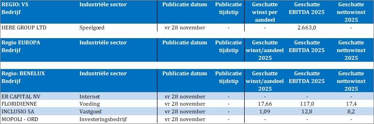 Bedrijfsresultaten komen er vandaag van ER Capital, Floridienne, Here Group, Inclusio en Mopoli, op een dat dag waarop Wall Street slechts voor de helft open zal zijn. En zelfs zo’n helft is de naam niet waardig om de beurs écht als open te beschouwen.