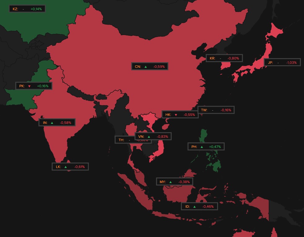 Azië koos voor een dagje aan de zijlijn: China en Hongkong, Zuid-Korea, Japan en India dalen namelijk allemaal tussen -0,6% en -0,8%. Consolidatie, heet dan dan, maar het is vooral wachten op de top tussen Xi en Trump, en of die de beleggers niet teleur gaat stellen. Nochtans opende de Aziatische markten sterk, dankzij meevallers op het vlak van de regionale economische cijfers. Maar de Zuid-Koreaanse Kospi dipte niettemin ook lager ondanks de BBP-groei in het derde kwartaal de verwachtingen overtrof met 1,2% k-o-k (versus 0,3% verwacht). Hier speelt vooral solide consumentenbestedingen een belangrijke rol.