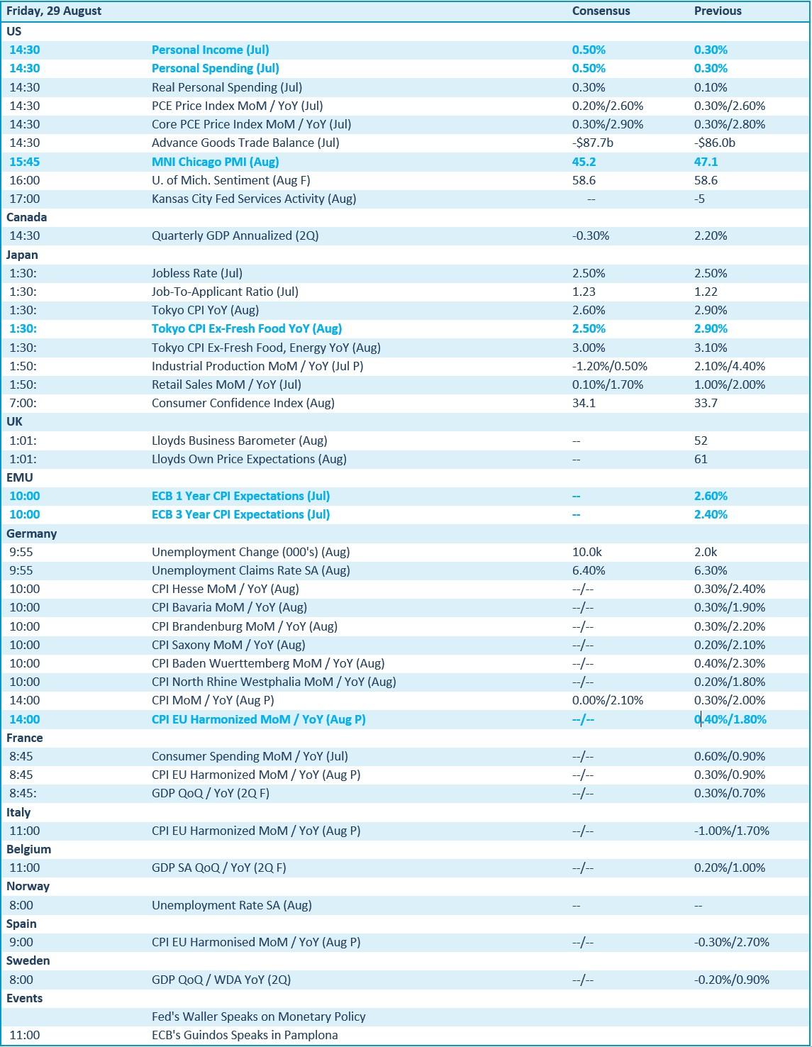 Er staat vandaag héél véél op het menu, dus voor de volledigheid consulteert u best de kalender zelf. Qua hoogtepunten stippen we in de VS de persoonlijke inkomens in juli aan, de favoriete inflatiebarometer van de Fed (PCE prijsindex) en de Michigan sentiment.