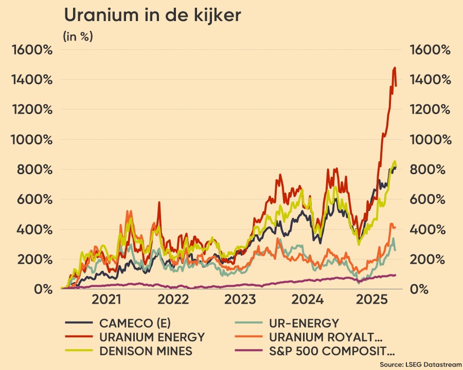 Het werd vooral een topdag voor uraniumaandelen in de VS. De regering-Trump faciliteerde immers de aankoop ter waarde van 80 miljard dollar aan kernreactoren door onder meer Westinghouse, waarmee de overheid de belangrijkste koper wordt voor nieuwe binnenlandse nucleaire projecten. Dat is onderdeel van een bredere push richting nucleaire capaciteit. De VS zal een 8%-belang in Westinghouse verwerven, waardoor de hele sector aan het feesten ging. Cameco steeg met 23,4% tot een recordhoogte, Ur-Energy 7%, Denison Mines, Uranium Energy en Uranium Royalty allen tussen 5% en 20%.