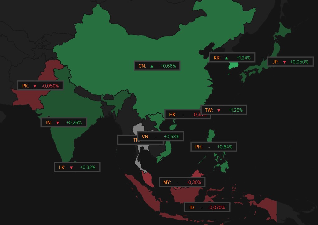 In Azië hield het optimisme over “alles technologie” aan, al pieterde de rally van de voorbije weken wel weer wat uit. De Japanse Nikkei 225 miste de boot met 0,2% verlies, waarbij de exportbedrijven zich in de kijker speelden omwille van de zwak blijvende yen. De Zuid-Koreaanse Kospi kreeg er 1,7% bij, Hongkong daalde 0,33%, terwjil de Chinese technologiegroepen de Shanghai-index voor het eerst in jaren voorbij de 4.000 punten duwden (+1%). In India (+0,3%) sprongen metaalaandelen zoals Tata Steel en Hindalco op grondstoffenherstel.
