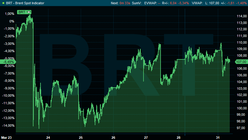De vraag blijft of de Fed en de ECB de luxe hebben om hogere inflatie (en dito inflatieverwachtingen) te negeren om het hoofd te bieden aan een mogelijk negatief effect op de groei. Voorlopige Duitse inflatiecijfers liegen er alvast niet om: de inflatie in maart versnelde van 2% naar 2,8% op jaarbasis. De Belgische inflatie versnelde in maart van 1,45% op jaarbasis naar 1,65%, omwille van prijsstijgingen voor motorbrandstoffen en pakketreizen. Maar de echte energieschok zien we nog niet in de data.