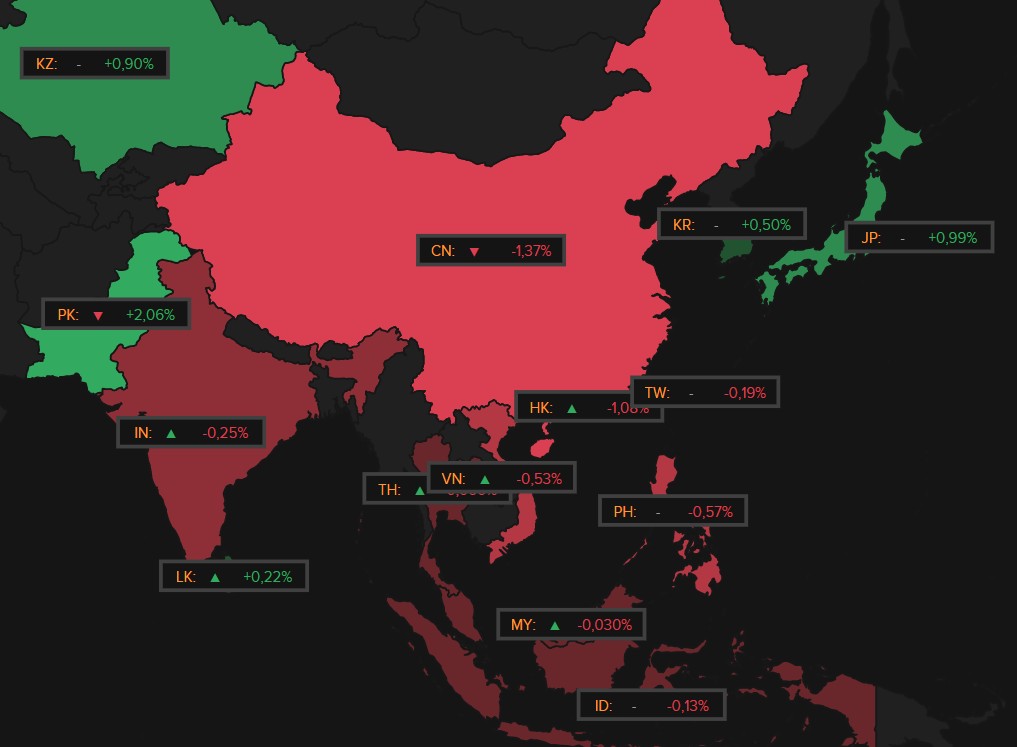 De People's Bank of China liet haar standaardrente voor de vijfde maand ongewijzigd op 3,0%, prioriteit gevend aan stabiliteit van de yuan boven agressieve versoepeling te midden van deflatiedruk. Die druk komt er onder meer door een slabakkende productiesector, want vannacht bleek dat de PMI-sentimentsindex voor de verwerkende industrie in oktober onverwacht sterk daalde van 49,8 naar 49,0 punten, het laagste niveau sinds april. Prijsconcurrentie en neerwaartse druk op de buitenlandse verkoop liggen aan de basis, terwijl de inflatie van de inkoopkosten naar het laagste punt in drie maanden afgleed. Vooruitkijkend verzwakte het ondernemersvertrouwen dan weer tot het laagste peil in drie maanden. Weinig opbeurend, en tijd voor actie, nietwaar?