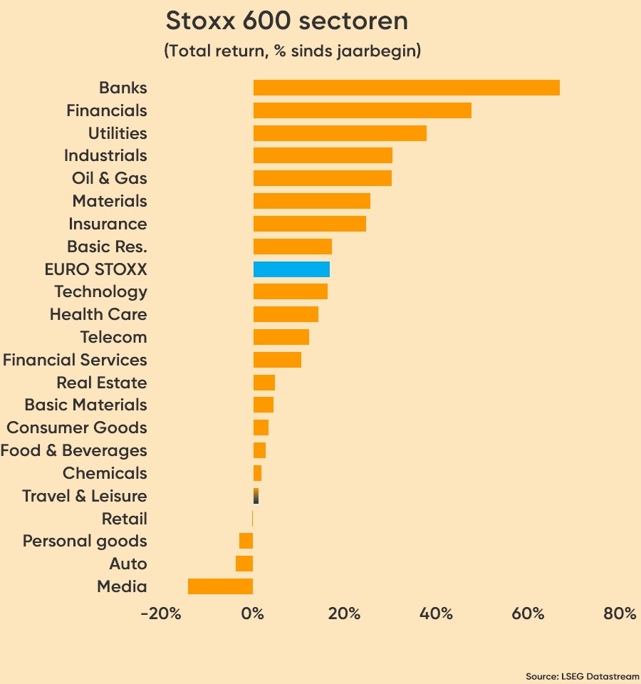 Alles bij elkaar ging de Stoxx 600 met 0,1% verlies de dag uit, ondanks de beter dan verwachte BBP-groei van de eurozone met 0,2% in het derde kwartaal. De Britse FTSE 100 ging met 0,1% winst de deur uit, een nieuw record, dankzij de sectoren energie en mijnbouw, omdat de grondstoffenprijzen blijven stijgen. De DAX moest 0,7% lager omdat de autobedrijven zoals BMW (-1%) in het slop blijven zitten.