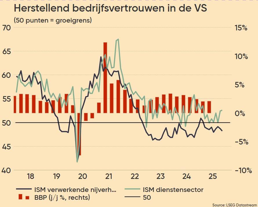 Op macro-economisch vlak bereikte de bedrijfsactiviteit in de eurozone in november het hoogste niveau in 2,5 jaar. De samengestelde PMI steeg naar 52,8, gedreven door sterke dienstenactiviteit. Dat schept een gunstig klimaat voor 2026, wat voor beleggers duidelijk kansen oplevert in defensieve en cyclische sectoren.