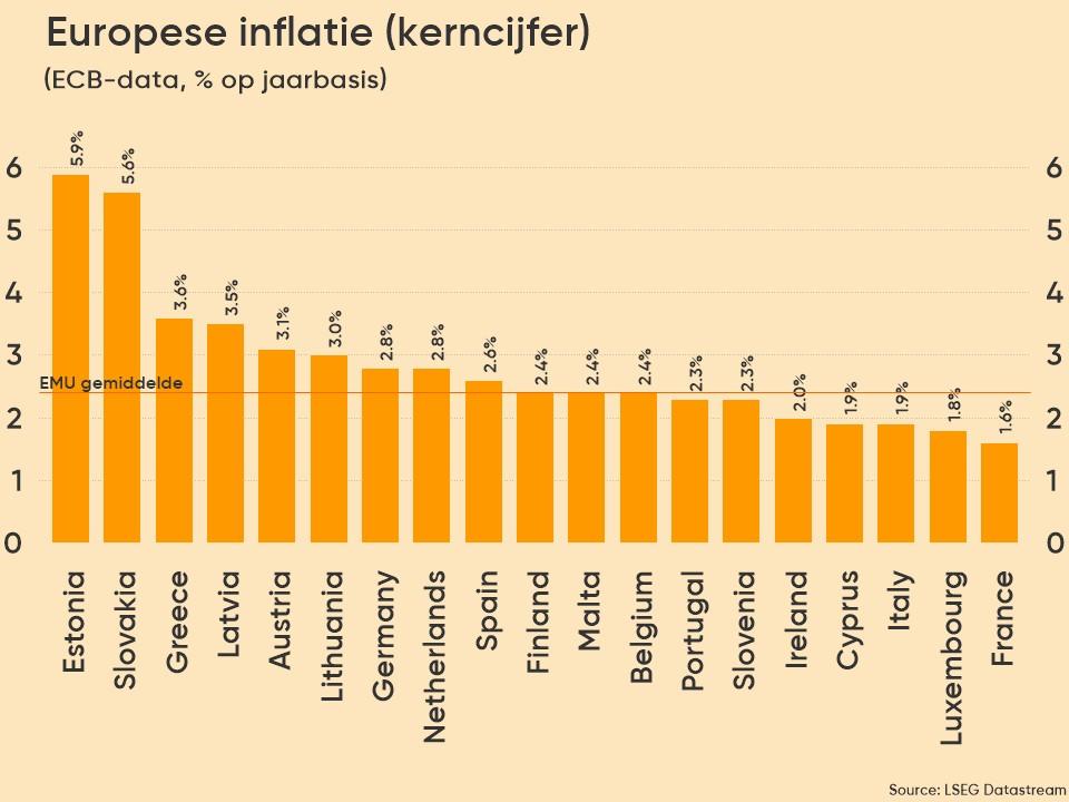 Tegen de achtergrond van de vrees voor de effecten van de "energieschok" kregen we gisteren eerder tegenvallende inflatiecijfers voor de eurozone in februari. De kerninflatie, dat geen rekening houdt met energie en voeding, steeg door naar 2,4% en dat was nog voor de huidige hausse van de energieprijzen door de oorlog in het Midden-Oosten. Om maar te zeggen dat inflatie wel degelijk nog altijd een dingetje is...