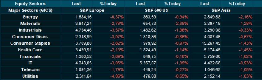 Onder meer continentaal Europa is erg kwetsbaar voor energieprijzen, zodat voornamelijk de energie-intensieve sectoren zoals de verwerkende nijverheid en de chemische industrie daalden. Ook verzekeraars worden door beleggers met de rug aangekeken, door zorgen over de omvang van oorlogsgerelateerde uitbetalingen. De afhankelijkheid van energie speelt trouwens vooral in het nadeel van onder meer China, Turkije, Maleisië en Tsjechië, onder meer omdat China 50% van zijn olie-import betrekt via de Straat van Hormuz.
