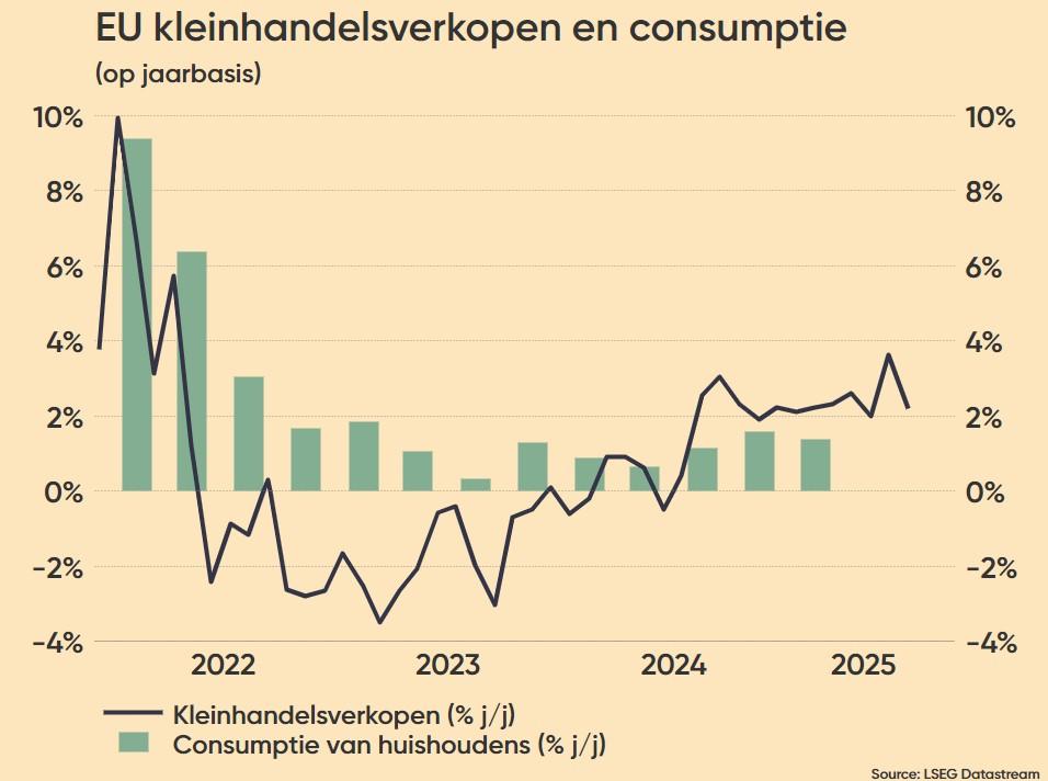 Tot slot geven we nog meer dat de Europese kleinhandel in juli met 0,5% kromp op maandbasis. Tegenvaller, ook omdat de opwaarts bijgestelde stijging met 0,6% in juni op die manier teniet werd gedaan. Meer nog, juli leverde de sterkste terugval van de volumes op in bijna twee jaar, onder druk van voedings- en genotmiddelen (-1,1%) en autobrandstoffen (-1,7%). Doorheen de eurozone daalde de kleinhandel in Duitsland met 1,5%, in Spanje met 0,4%, tegenover een stabiele 0% in Frankrijk.