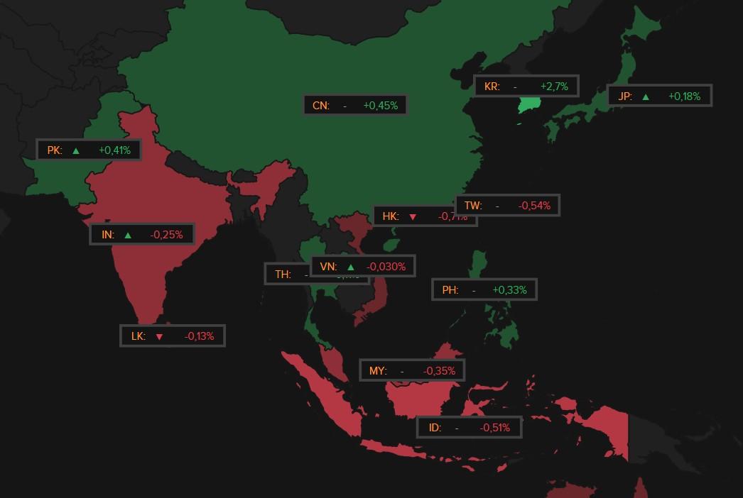Ondertussen komen de aandelenmarkten in Azië wat op adem, met stabiliteit in Japan (+0,2%), maar verlies in Hongkong -0,7%, Taiwan -0,5%, India -0,2%. De markten van China en Zuid-Korea hielden de deuren dicht voor een lange vakantie, maar vooral die laatste gaf wél al aan dat het een fors negatieve impact vreest van de recente Europese importtarieven op staal.