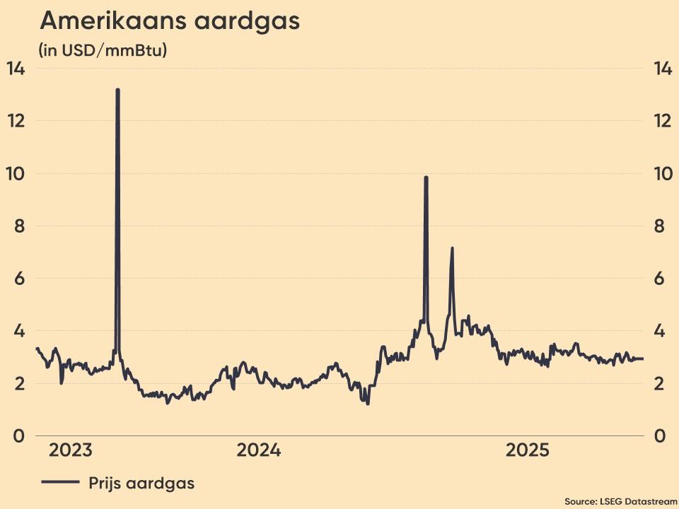 Op de grondstoffenmarkten daalde de prijs voor een vat Brent-olie met 0,1% tot 65,38 dollar, terwijl de Amerikaanse aardgasprijzen doorstegen naar zo’n 3,73 dollar per miljoen Britse thermische eenheden (mmBtu). Dat is de hoogste prijs in drie jaar, en zou een voorbode kunnen zijn van een verdere stijging tot 4,22 dollar in 2026, althans als het van de analisten afhangt. De winter staat voor de deur én de LNG-activiteit lijkt aan te gaan trekken .