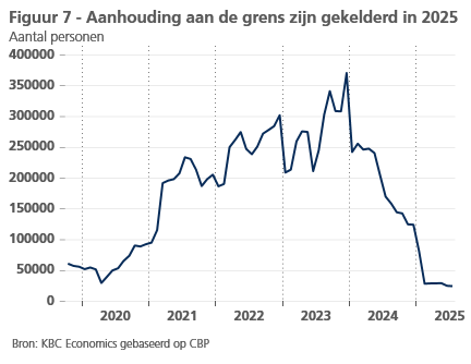 Een ander element dat niet in de modellen is opgenomen, is het effect van de wet op de migratiestromen. De OBBBA zal 170 miljard USD extra besteden aan het versterken van de grensbeveiliging en het uitzetten van immigranten zonder papieren. Het grootste deel van dit geld gaat naar twee departementen, ICE (Immigration and Customs Enforcement) en CBP (Customs and Border Protection), die vóór de goedkeuring van deze wet samen een jaarlijks budget van ongeveer 30 miljard USD hadden. Deze wet zal dus de inspanningen van de Trump-regering om het aantal immigranten zonder papieren in de VS te verminderen, een boost geven.