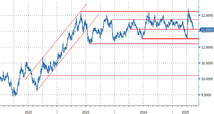 Wat betekent dit voor de Noorse kroon? Renteverschillen waren recent geen bepalende factor. Ondanks het aanhoudend hoog rentevoordeel t.a.v. bijvoorbeeld de Zweedse buur, deed die laatste het sinds november vorig jaar aanzienlijk beter. Onder meer het iets meer cyclisch karakter van de NOK (band met de olieprijs) zorgt voor wat meer terughoudendheid. In het algemeen deden kleinere munten het recent niet zo slecht in de context van algemene volatiliteit gecombineerd met USD-zwakte. De kroon is niet duur en kan nog wat verder terrein winnen tegen de euro. EUR/NOK 11.27/10 is een belangrijke steun (NOK-weerstand). In de mate dat algemene (handels-) onzekerheid nog voor langere tijd hoger blijft dan gemiddeld, worden forse, volgehouden NOK-winsten voorbij dat niveau moeilijk.