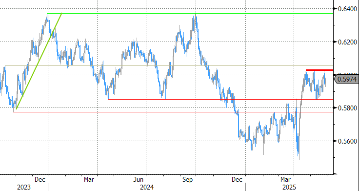 NZD/USD botst voorlopig tegen 0.60-weerstand aan