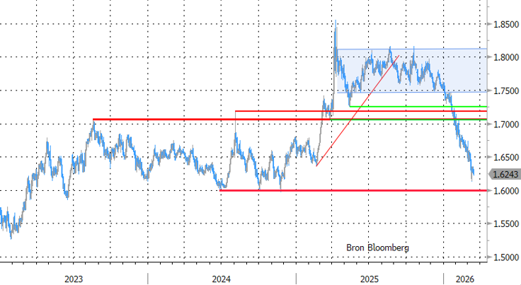 Het vooruitzicht op rentesteun in een context van degelijke groei en ruime beschikbaarheid van grondstoffen en energie waren recent troeven voor de Aussie dollar. Die heeft voorlopig nog nauwelijks last van zijn vroegere gevoeligheid voor risicoaversie. AUD/USD verstevigde boven de kaap van 0.70 (nota bene tegen een sterke dollar) en botst zelfs tegen de sterkste niveaus sinds midden 2022 aan. De (door energie gekwetste) euro kan al helemaal niet volgen. EUR/AUD dook van boven 1.80 in oktober tot EUR/AUD 1.62 nu. Hier is 1.60 de volgende referentie op de grafieken. Er is wel al een stevige portie goed (rente)nieuws verdisconteerd voor de AUD. Toch is er op korte termijn weinig reden om tegen het marktmomentum in te roeien.