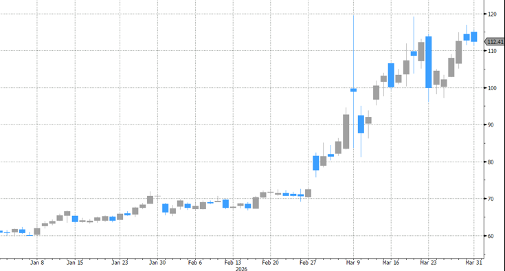 Brent ruwe olie: +85% sinds de start van het jaar