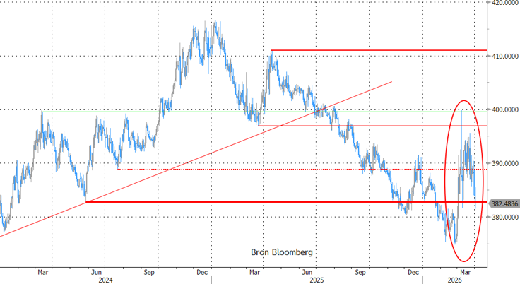 Wanneer mag ‘later’ dan wel zijn? Alles hangt uiteraard af van de brede economische en vooral prijsimpact van het conflict in Iran. In een gunstig scenario kan het debat over eventuele versoepeling terug starten na de zomer. ALS….Toch een sprankeltje hoop voor de MNB. Na de eerste verkoopgolf valt de forint vrij snel ‘op zijn pootjes’ (EUR/HUF 382). Naast het MNB-beleid, speelt nog een andere factor. De markt zet in op een beleidswissel na de verkiezingen van 12 april. Volgens peilingen kan de Tisza-partij van Peter Magyar een einde maken aan het politieke tijdperk ‘Orban’. In dat geval zou Hongarije onder meer geblokkeerde Europese gelden relatief snel ter beschikking kunnen krijgen. Ook dat verklaart deels de veerkracht van de forint. Op deze verhaallijn komen we later deze maand zeker terug.