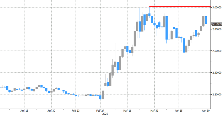 De ongewijzigde rentebeslissing gaat gepaard met een gewijzigde beleidsverklaring. Sprak de centrale bank in maart nog van opwaartse inflatie risico’s en neerwaartse groeirisico’s dan gaat het nu over “verder toegenomen” risico’s. De niet-lineaire impact van de duur van de oorlog en hogere energieprijzen wordt ook in de verf gezet. Tijd als katalysator. Uitdijende prijsdruk als gevolg. De verklaring maakt een specifiek onderscheid tussen (voorlopig) stabiele langetermijn inflatieverwachtingen en een scherpe toename op kortere looptijden. We nemen de consumentenenquête van de ECB als voorbeeld. Inflatieverwachtingen op 1 jaar: 4% van 2.5%. Het hoogste niveau sinds september 2023 en te vergelijken met een piek van 5.8% in oktober 2022. Inflatieverwachting op 3 jaar, nota bene de beleidshorizon van de centrale bank: 3% van 2.5%, enkel overtroffen in oktober 2022 (3.1%). Pro forma: de enquête betrof de maand maart. Ten slotte was er een kleine, maar belangrijke, aanvulling in de algemene slotparagraaf. Die zegt dat ECB data-afhankelijk, niet-vooringenomen, te werk gaat met het oog op prijsstabiliteit. Vandaag met toevoeging van het nauw opvolgen van de situatie. In een wereld waarin elk woord van een centrale bankier nauwkeurig wordt gewikt en gewogen, telt die nuance. In een ver verleden (ECB Trichet) was ze voorbode van een renteverhoging. Zat de revolver voordien nog in de holster, ligt die nu in de hand. Vinger op de trekker.