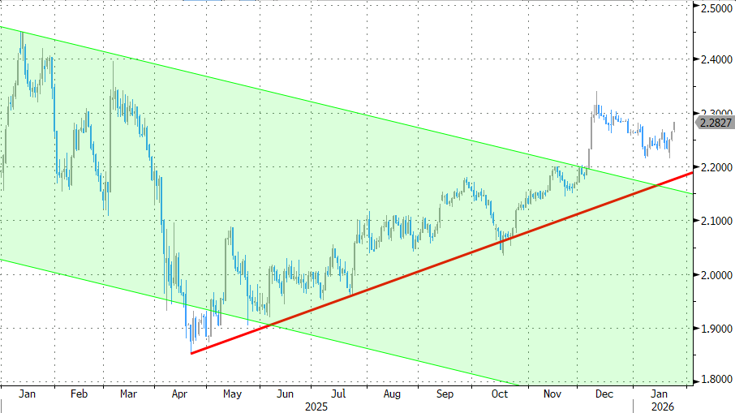 De markt deelt onze positieve lezing van de cijfers. Europese rentes trekken marginaal hoger aan het korte eind van de curve. Begin deze week sloop in de geldmarkt opnieuw wat lichte twijfel rond het lange status quo van de ECB omwille van de Groenlandcrisis. Na de 180°-bocht van Trump en met deze PMI’s is daar geen enkele reden toe. De tweejaarswaprente maakt zich op voor de hoogste sluiting van deze maand. De wisselmarkt haalt de schouders op. EUR/USD handelt in de buurt van 1.173.