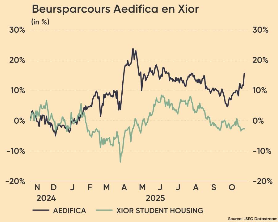 KBC Securities verhoogde vandaag het advies voor Aedifica van “Houden” naar “Kopen”, vooruitlopend op de goedkeuring door de mededingingsautoriteiten die midden januari wordt verwacht. Aangezien de zichtbaarheid van de tijdlijn vorige week is verbeterd, geloven wij dat beleggers zullen beginnen positie in te nemen. Op fundamentele basis, rekening houdend met de fusie, heeft het aandeel een opwaarts potentieel van 23,0% tot zijn reële waarde van 78,0 euro bij een koers-winstverhouding van 14x op basis van schattingen voor 2026.