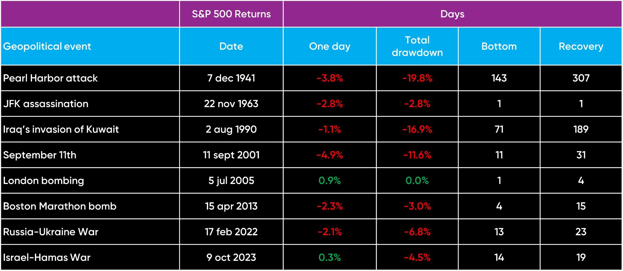 Op wat langere termijn draait het voor beleggers bij het vooruitkijken om één kernvraag: blijft de economische schade beperkt, of groeit dit uit tot een macro-economische schok via energie, handel en beleidsreacties? Met die bril in het achterhoofd bekijken we hieronder de historische les: geopolitieke gebeurtenissen domineren vaak de krantenkoppen, maar de blijvende marktimpact hangt vooral af van de gevolgen voor groei, inflatie en monetair beleid.