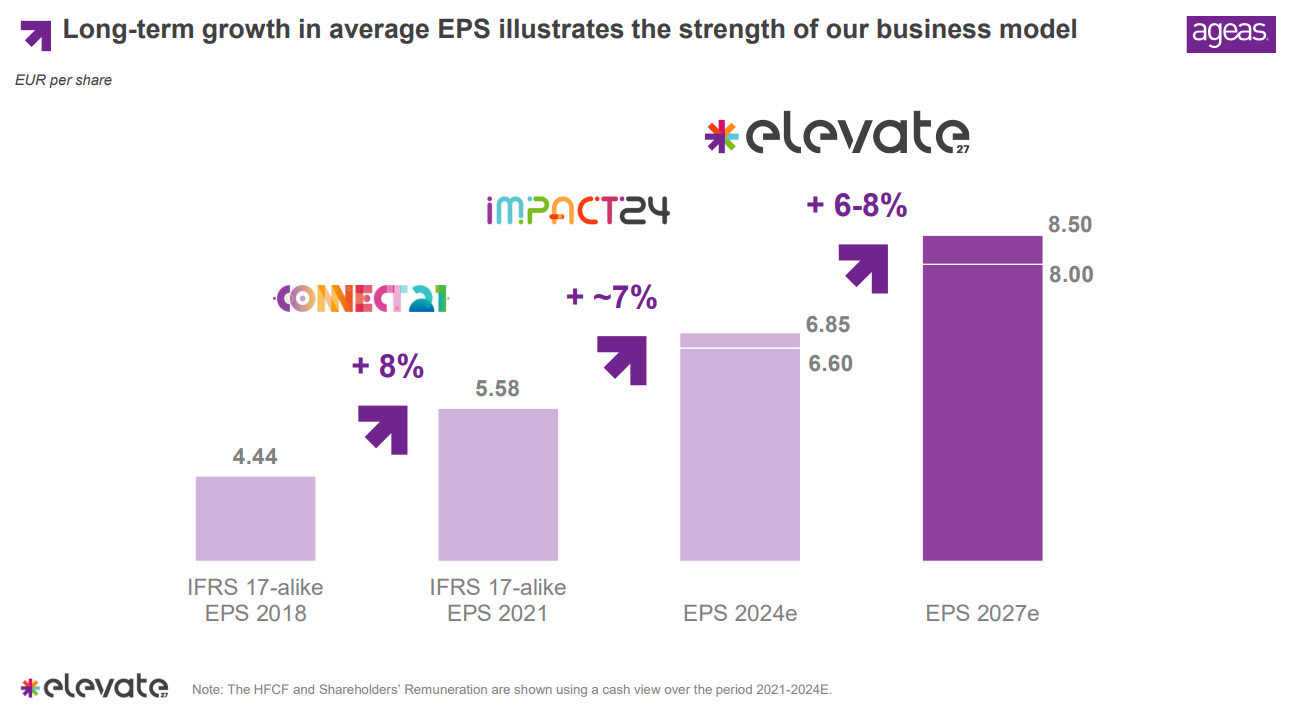 Naar aanleiding van de transactie verhoogt Ageas haar eerder gecommuniceerde “Elevate27”-doelstellingen voor 2025-2027. De beschikbare vrije kasstroom zal toenemen van meer dan 2,3 miljard euro naar meer dan 2,6 miljard, terwijl de aandeelhoudersvergoeding zal stijgen van meer dan 2,0 miljard naar meer dan 2,2 miljard euro.