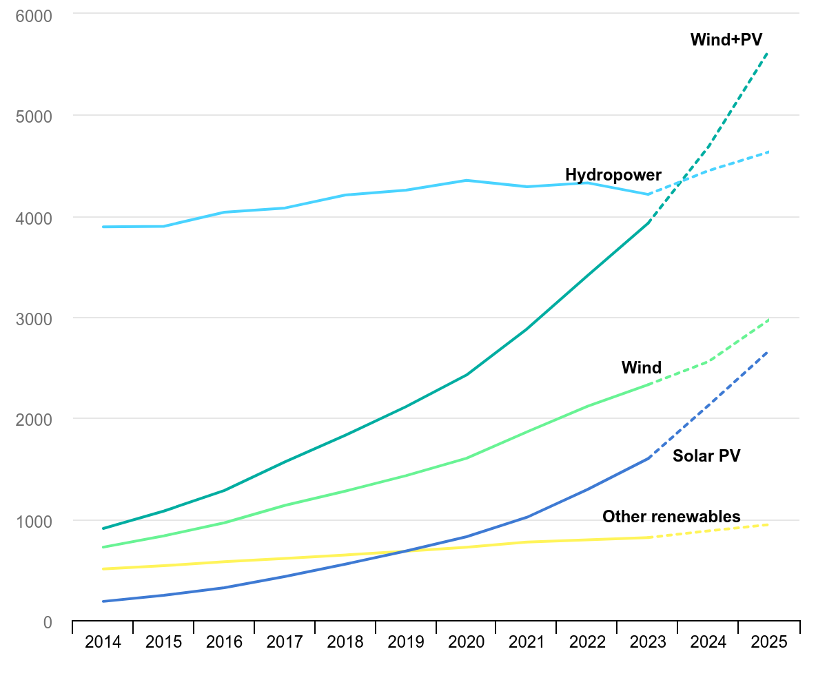 Het Verenigd Koninkrijk heeft sinds 2020 een vervijfvoudiging van het aantal zonne-installaties voor woningen gezien, ondanks het gebrek aan beleidsstimulansen. China bereikte in 2024 een recorduitbreiding van 45% van de zonnecapaciteit en haalde zijn doelstelling voor hernieuwbare energie voor 2030 zes jaar eerder dan gepland. De nieuwe energiewet die in januari 2025 is aangenomen, geeft prioriteit aan verdere uitbouw van hernieuwbare energie.