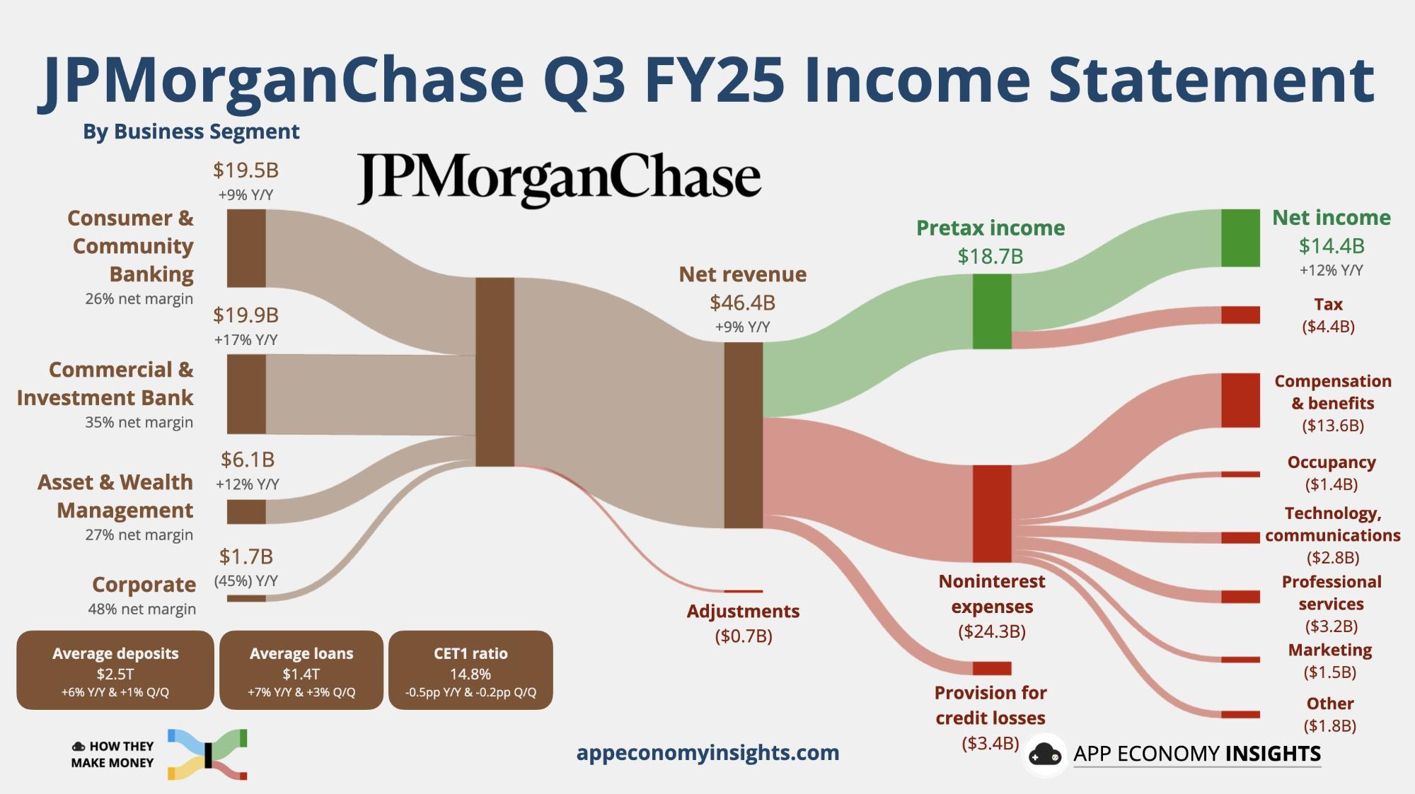 De resultaten van JPMorgan Chase over het derde kwartaal van 2025 zijn op vrijwel alle fronten indrukwekkend. De bank bevestigt haar leidende positie met sterke groei in trading, investment banking en solide prestaties in de consumententak. De winstgroei, de sterke efficiency ratio en de robuuste kapitaalpositie onderstrepen de operationele kracht van het concern.
