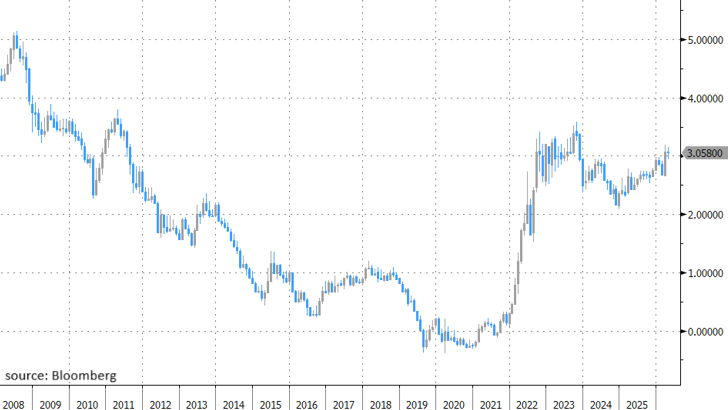 De geopolitieke schok zindert wel nog na op andere segmenten. Vrees voor een langere periode van een ontwrichte oliestroom vanuit het Midden-Oosten houdt de prijs van een vat Brent tussen $90 en $100. Lager dan vóór het staakt-het-vuren (tussen $100 en $120) maar beduidend boven de $60-$70 van de maanden in de aanloop naar de eerste Amerikaans-Israëlische luchtaanvallen. Dat is de context waarin ECB-voorzitster Lagarde gisteren duiding gaf over de reactiefunctie van de centrale bank. Ze deed dat tijdens een interview in de marge van de jaarlijkse bijeenkomst georganiseerd door haar voormalige werkgever het IMF en de Wereldbank.