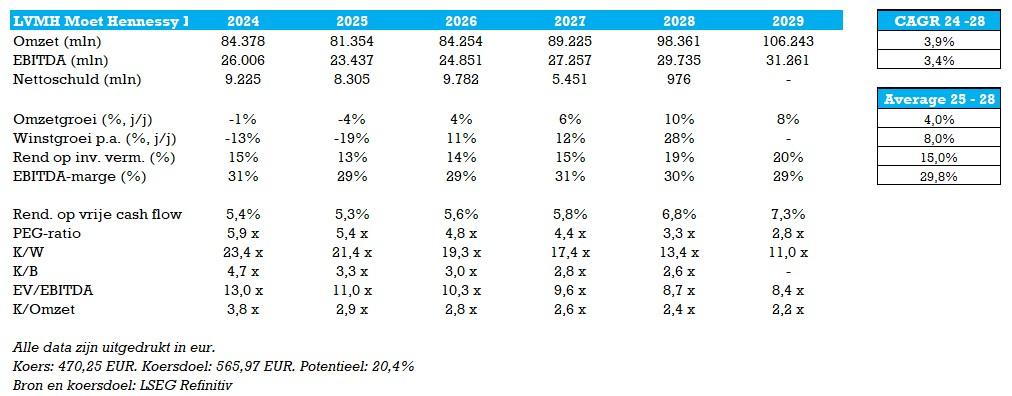 Het is zeer moeilijk voorspellen wanneer we opnieuw een aantrekking zullen krijgen in de luxe sector. Veel factoren spelen een rol zowel op het vlak van wisselkoersen als op het vlak van Amerikaanse/Chinese consumenten. Tot op heden werden we telkens grotendeels teleurgesteld waardoor we nu aankijken tegen een koers zonder luxestatus. We verwachten een sterke heropleving bij verbetering in één van voorgaande punten. Daarom blijven we ook vasthouden aan ons 'kopen' advies doordat we zien dat de huidige koers geen correcte weergave is van de sterktes die het bedrijf nog steeds bezit, ondanks de huidige luxe malaise. KBC Securities verlaagt het koersdoel van 730 naar 660 euro.