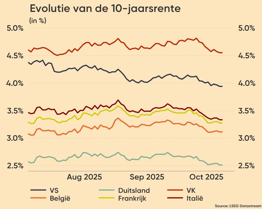 Op de rentemarkten kregen obligaties geen last van hoogtevrees, eerder andersom. De 10-jaarsrente in de VS steeg tot boven de 4,22%, het hoogste niveau sinds eind juli, terwijl de Duitse variant er gisteren 2 basispunten bijkreeg tot 2,28%. Per 1 oktober stonden de bordjes nog op 3,74% en 2,04%.