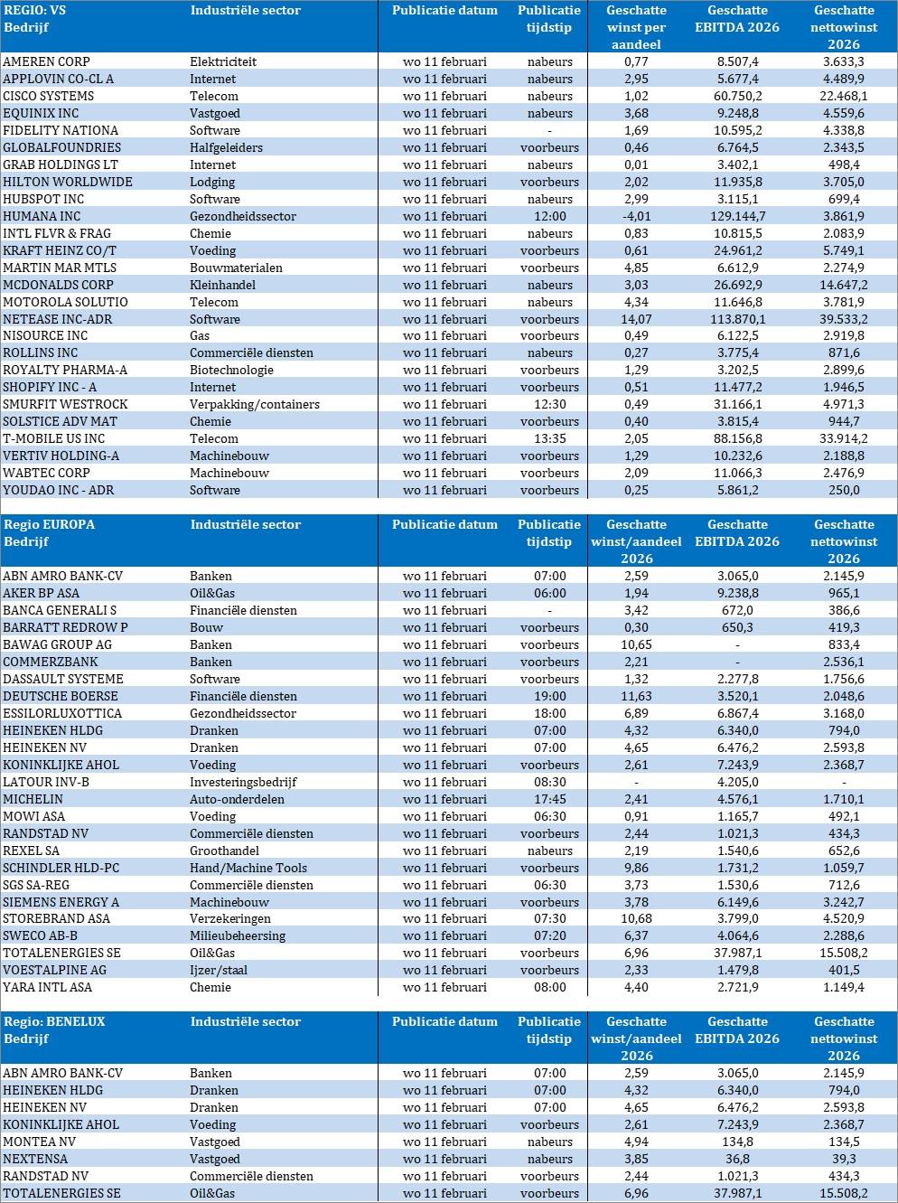 Bedrijfsresultaten zijn er vandaag in grote getalen, maar de lijst is té lang om hier zomaar even weer te geven. Alzo, ik verwijs u graag door naar de resultatenkalender hieronder