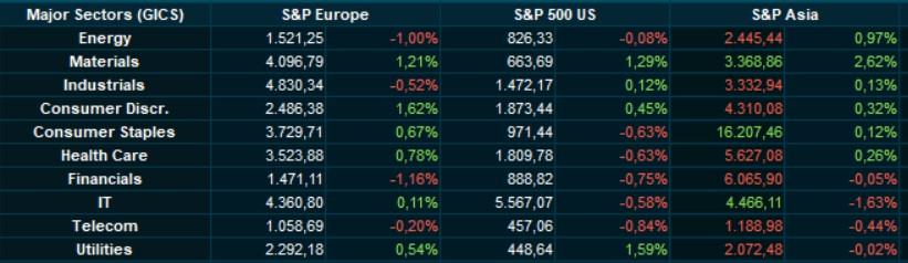 De Euro Stoxx 600 kon geen richting kiezen (–0,07%), deels omdat de Duitse DAX verzwakte (–0,11%) en de BEL20 er geen zin in had (0,00%). Meer algemeen werd het 5,6% verlies van BP (omdat het de inkoop van eigen aandelen opschortte), teniet gedaan door winsten in luxeaandelen na een beter dan verwachte winstupdate van Kering. Dat ruikt naar sectorrotatie, weg van rentegevoelige en cyclische waarden, richting defensieve (+0,8%) en consumentgerichte sectoren (+1,6%), terwijl ook de grondstoffen blijven presteren (+1,2%). Financials (–1,2%) en energie (-1%) verloren het meest, terwijl technologie (+0,11%) geen richting vond.
