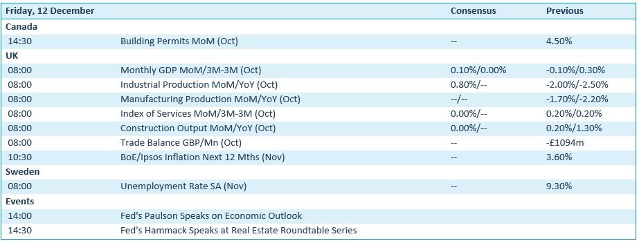 De economische kalender heeft amper wat om het lijf. Enkel in het VK staat er wat nuttigs op de agenda. Zo bijvoorbeeld de industriële productie en de output van de maakindustrie, naast dienstenindex, de handelsbalans én een update van de inflatieverwachtingen voor de komende 12 maanden. In Zweden verschijnt de werkloosheid (nov) en in de VS mogen enkele Fed‑leden een speech afsteken.