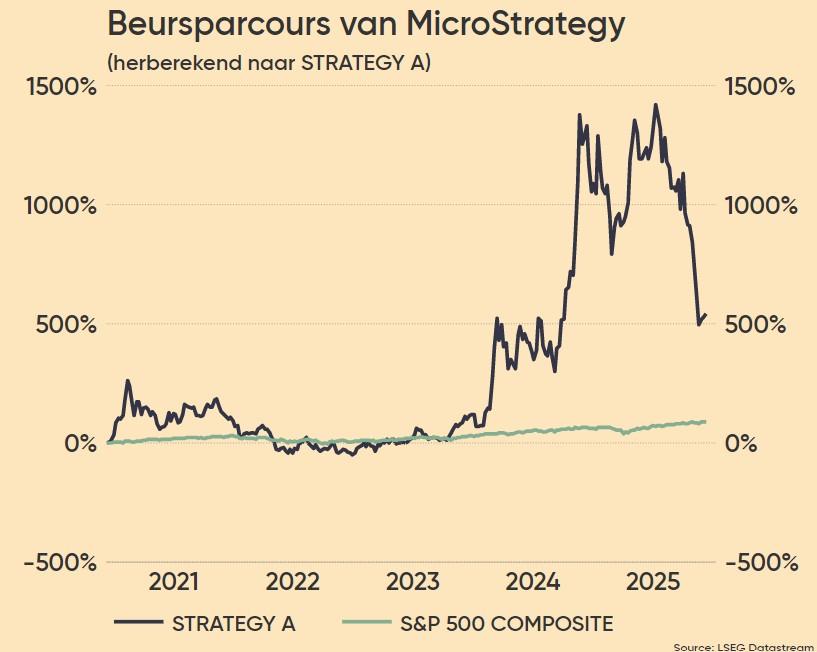 Op sectorniveau daalden de halfgeleiderbedrijven (de overkoepelende Philadelphia Semiconductor index verloor 2%, Nvidia 3,1%, CoreWeave 5,7%, Applied Digital 3,6% en Nebius -4,4%). Crypto-aandelen stonden initeel eveneens onder druk, zo bijvoorbeeld MicroStrategy (-3,3%) en Bit Digital (-3,1%) omdat de koers van de bitcoin kort onder de grens van 90.000 dollar zakte. Maar diezelfde bitcoin zette rond het Amerikaanse middaguur een tussensprint in om 1,5% hoger af te klokken op 92.433 dollar.