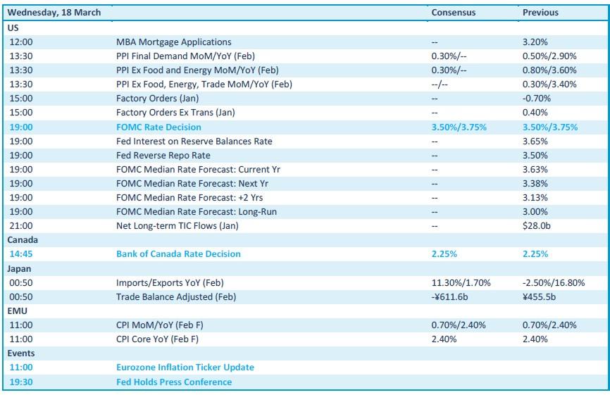 Vandaag kijken we met stip uit naar de rentevergadering van de Federal Reserve, geflankeerd door inflatiecijfers in de producentenketen en een update over de Amerikaanse fabrieksorders. De kans dat de Fed aan de rente morrelt is wel quasi nul, omwille van de potentieel inflatoire schok door de oorlog in Iran, maar toch kan de persconferentie héél wat nuttige commentaren opleveren voor het verdere rentepad. Ook in Canada staat de een rentebeslissing op het menu, terwijl Japan al trakteerde op handelscijfers voor februari. In Europa kijken we uit naar finale inflatiecijfers.