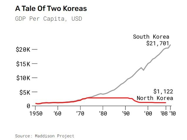Eindigen doen we met een knipoog. De Noord-Koreaanse Oppergod Kim Jong-un heeft namelijk met een verpletterend overwicht de parlementsverkiezingen in Noord-Korea gewonnen. De man haalden 99,93% van de stemmen. Dat ontlokte mijn confrater Nico Inberg de bedenking wat de overige 0,07% van de stemmers staat te wachten: een kopje thee of een open raam. U mag zelf oordelen, net zoals over de wie de economische winnaar is van de twee Korea’s.