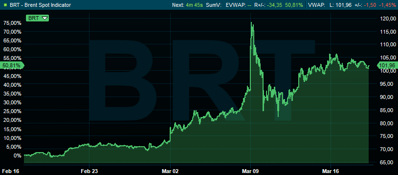 Maar nadat Roerganger Trump zijn Bolero-portefeuille nakeek, mocht het blijkbaar wat sneller gaan. In een boodschap op zijn social media platform stelde de Vredespresident dat eens de oorlog voorbij is, de olieprijzen “als een steen zullen vallen”. En dat zou aandelen moeten doen vlammen. Maar tot nader order kost een vat olie wel nog altijd 50% meer dan vorige maand…
