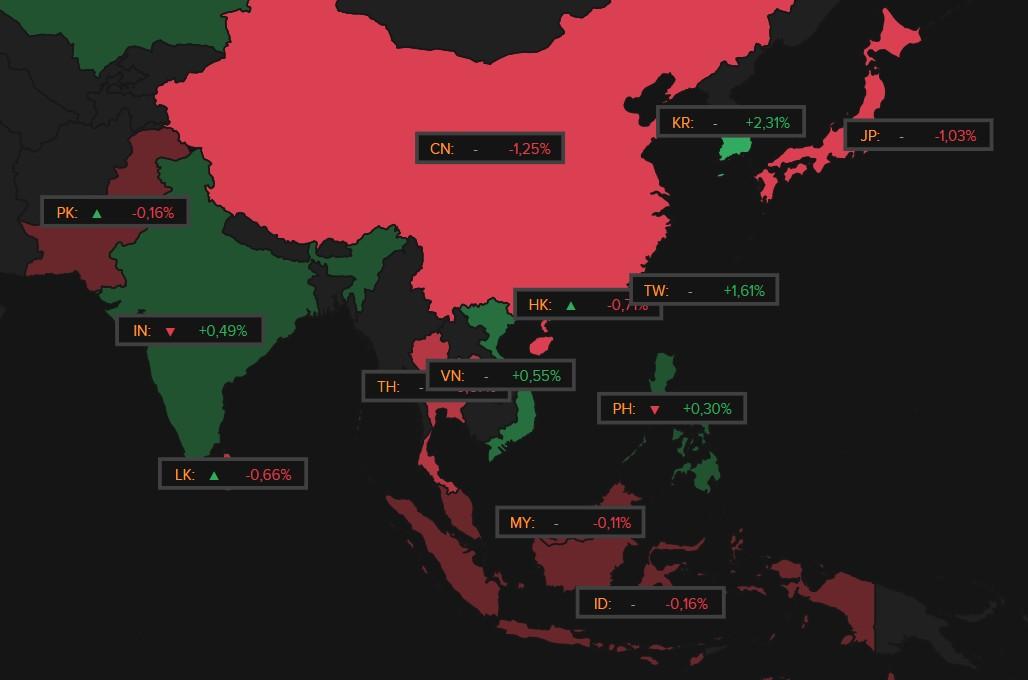 Over Azië kunnen we weinig zeggen, omwille van de nieuwsjaarfestiviteiten. Maar Zuid‑Korea (+2,3%) blijft wél herstellen, terwijl Japan 1% lager werd gezet. Die laatste mag zich opmaken voor een driedaags weekend. Op sectorniveau waren de grootste verliezen voor de luchtvaartsector (-3,1%, ANA Holdings -3,2%, Japan Airlines -3%), technologie (Tokyo Electron -3,4%, SoftBank -3,2%) en de gezondsheidssector (Sumitomo Pharma -13%).