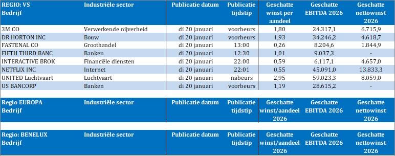 Bedrijfsresultaten komen er vandaag van 3M, D.R. Horton, Fastenal, Fifth Third Bank, Interactive Brokers, Netflix, United Airlines en U.S. Bancorp.