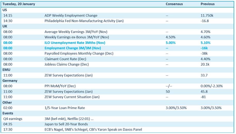 Wall Street doet vandaag weer de deur open, en trakteert met een nieuwe ADP‑schatting van de werkgelegenheid en de Philadelphia Fed‑enquête voor de dienstensector. Uit het VK krijgen we een batterij arbeidsmarktcijfers, met lonen, ILO‑werkloosheid en wijzigingen in werkgelegenheid en uitkeringsaanvragen. De Eurozone publiceert de ZEW‑verwachtingen, terwijl Duitsland zowel PPI als ZEW‑indicatoren brengt. China beslist over de 1‑ en 5‑jaars Loan Prime Rate, en Japan plaatst nieuwe 20‑jaars staatsobligaties. Et voila, zo kan ie wel weer.