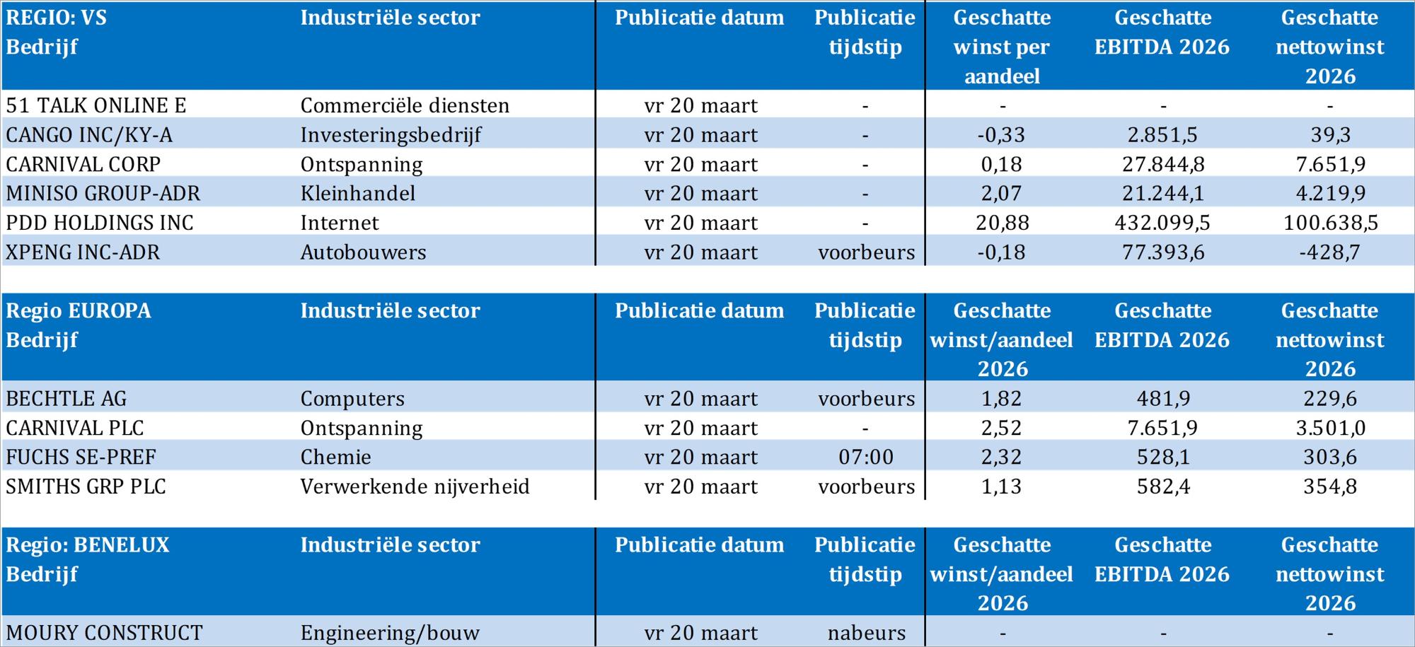 Bedrijfsresultaten komen er vandaag van 51 Talk Online, Bechtle, Cango, Carnival, Fuchs, Miniso Group, Moury Construct, PDD Holdings, Smiths en Xpeng.
