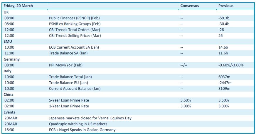 Veel nieuws krijgen we vandaag niet. De economische agenda is beperkt tot Britse data over de openbare financiën en de laatste trends in bestellingen en verkoopprijzen, terwijl Europa en Italië de lopende rekening en de handelsbalans vrijgeeft. Nee, dan zijn de Duitse producentenprijzen voor februari belangrijker. Noteer verder ook dat het “quadruple witching”-dag is in de VS en dat zorgt altijd wel voor volatiliteit.