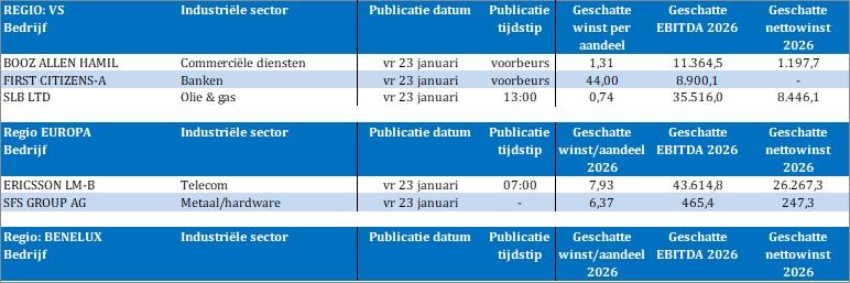 Bedrijfsresultaten komen er vandaag van Booz Allen Hamilton, Ericsson, First Citizens, SFS Group en SLB.