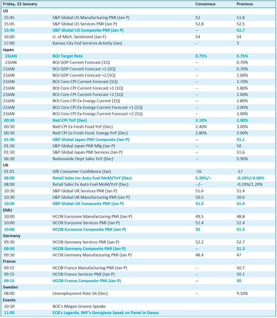 Er staan vandaag belangrijke PMI-data op de rol. Dat wil zeggen dat we vinger-aan-de-pols informatie krijgen over het bedrijfssentiment in VS, Europa, Duitsland, Japan, het VK en Frankrijk. Belangrijke informatie is dat, net zoals de sentimentsindex van de Universiteit van Michigan. Vanuit Japan kregen we onder meer al het rentebesluit, maar vergeet ook niet te kijken naar de nieuwe ramingen voor de economische groei en de kerninflatie.