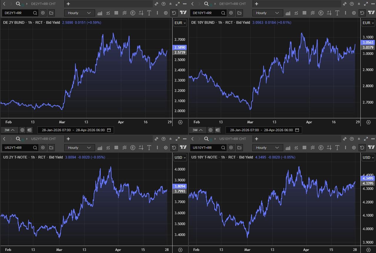 De Bank of Japan begon er daarstraks al aan, morgen komt de Fed en donderdag staan de ECB en de Bank of England met hun rapport klaar. Geen van hen zal toegeven, maar mogelijk wél de basis leggen voor toekomstige wijzigingen als ze menen dat de verhoogde energieprijzen hun weg beginnen vinden naar de reële economie en tot hogere inflatieverwachtingen zal leiden.