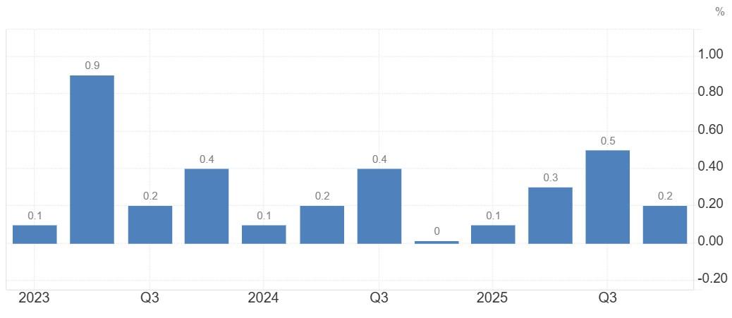 Om af te ronden geven we nog een “vers van de pers”-cijfer mee. De Franse economie ‘groeide’ in het vierde kwartaal van 2025 met 0,2% op kwartaalbasis, waar dat in het derde kwartaal nog 0,5% was. Dat is de zwakste groei in drie kwartalen, al lag die wel in lijn door een afzwakkende binnenlandse vraag. Ook viel de groei van de overheidsbestedingen terug en hield de voorraadafbouw aan, terwijl de consument de factor niets bijdroeg. Op jaarbasis groeide het bbp met 1,1%, iets onder verwachting van 1,2% én de sterkste jaargroei in vijf kwartalen. Maar jongens, het blijven erg povere cijfers.