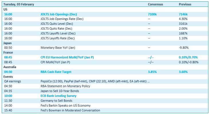 In de Verenigde Staten staan vandaag de JOLTS‑gegevens op de agenda, samen met nieuwe bedrijfsresultaten en toespraken van verschillende Fed‑leden. In Japan verschijnt de nieuwe monetaire basis. Frankrijk komt met inflatiecijfers, waaronder de geharmoniseerde CPI. Vanuit Australië volgt een rentebesluit van de RBA, aangevuld met een beleidsverklaring. In de Eurozone publiceert de ECB haar bank lending survey, terwijl in Duitsland nieuwe obligatie‑operaties gepland staan.