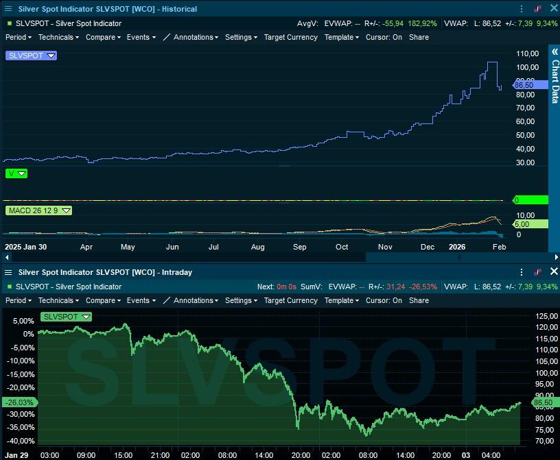 De fenomenale daling van de metaalprijzen was gisteren hét gesprek van de dag, al was het maar omdat er amper ander nieuws was. De verdere dalingen, met nog eens 10% à 15%, lokte Europese dipkopers weg van de zijlijn om de dagverliezen te milderen tot 3% à 5%. De échte aanleiding voor de malaise blijft niettemin onduidelijk, maar dat de benoeming van de meer conventionele, marktvriendelijke Warsh als Fed-voorzitter speelt zeker een rol, net zoals het feit dat er wel heel veel “leveraged bets” opgebouwd werden.