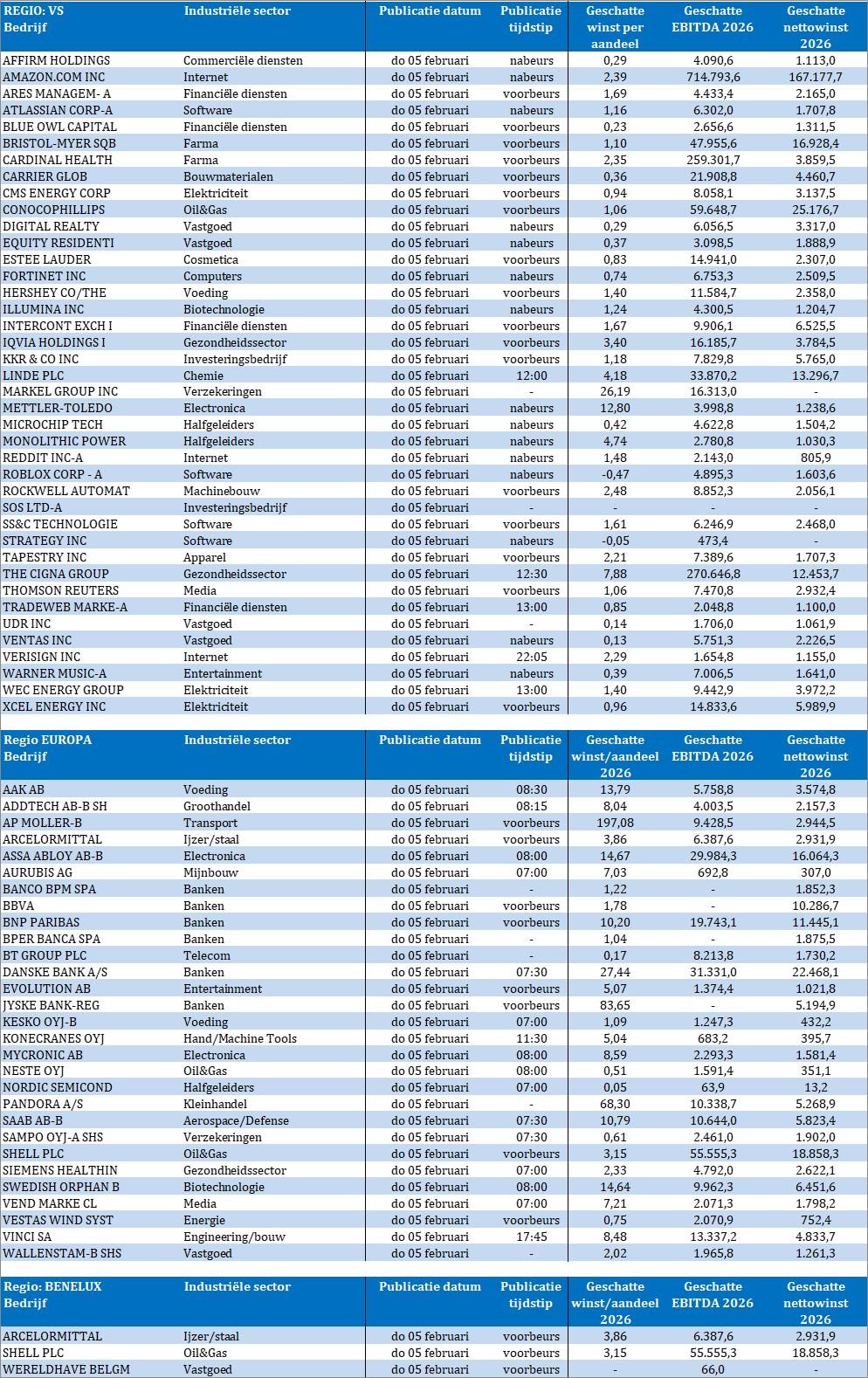 Qua bedrijfsresultaten wordt het alweer erg druk, met onder meer KKR, Strategy, Warner Music, Linde, Amazon, Danske Bank, Neste, Siemens Healthineers, ArcelorMittal, Shell en ga zo maar door.